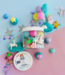 8 Ounces of Scented KidDough plus themed play pieces to create a fun interactive scene ideal for on the go. Ingredients: Wheat Flour, Salt, Canola Oil, Cream of Tartar, Water, Food Coloring, Organic Potassium Sorbate, and Fragrance